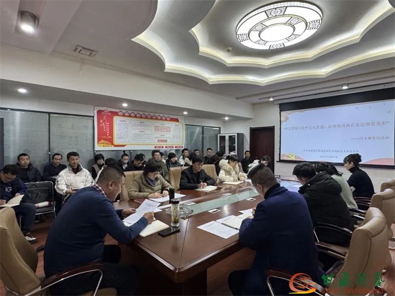 為深學(xué)細(xì)悟篤行習(xí)近平文化思想,牢牢把握正確政治方向、輿論導(dǎo)向、價(jià)值取向。2月24日下午,甘肅演藝集團(tuán)秦腔藝術(shù)劇院黨總支開(kāi)展“學(xué)習(xí)貫徹習(xí)近平文化思想,讓傳統(tǒng)戲曲在基層煥發(fā)光彩”主題黨日活動(dòng)?;顒?dòng)由劇院黨總支書(shū)記、藝術(shù)總監(jiān)蘇鳳麗主持。甘肅演藝集團(tuán)副總經(jīng)理、秦腔藝術(shù)劇院院長(zhǎng)馬勇,劇院其他班子成員、全體黨員、中層干部參加。