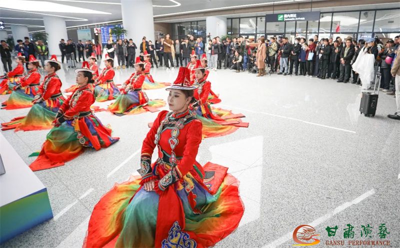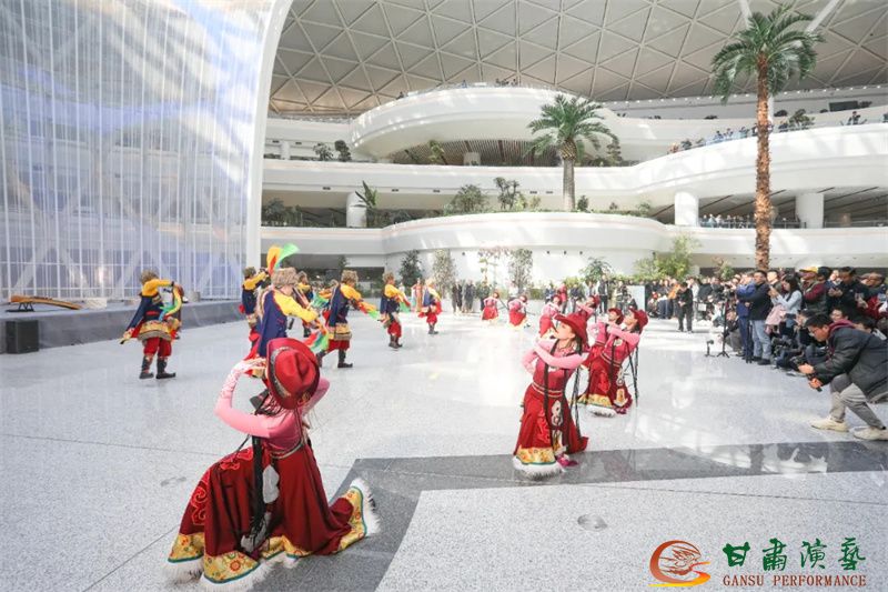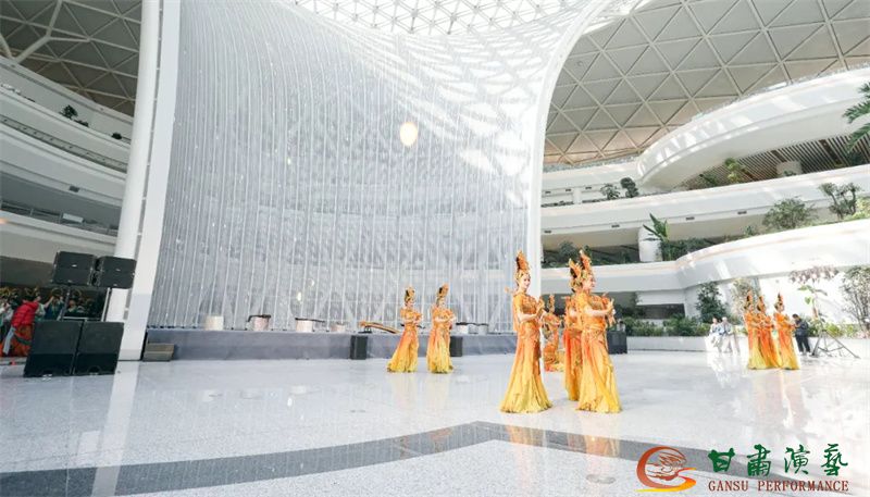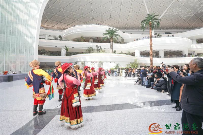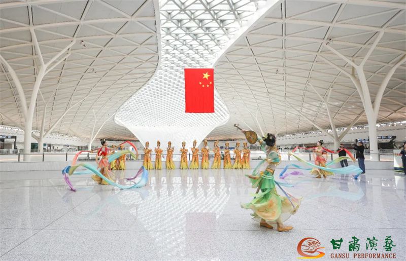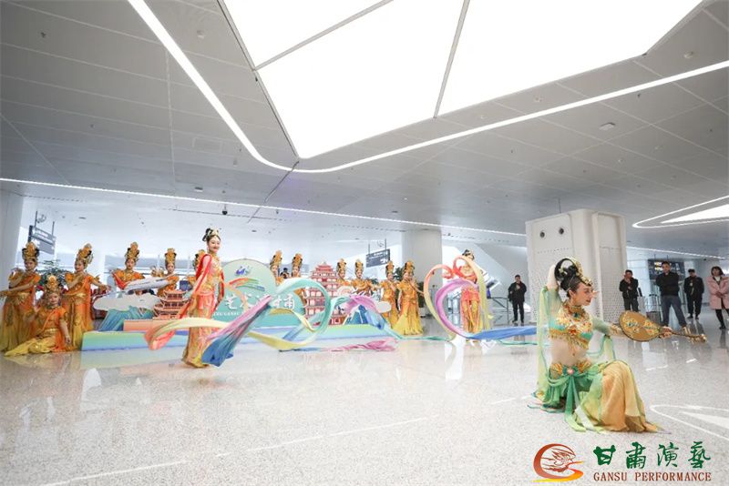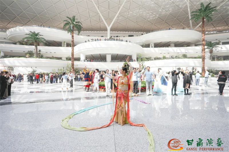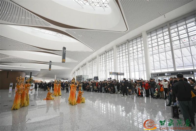 3月20日,蘭州中川國(guó)際機(jī)場(chǎng)T3航站樓正式投入運(yùn)營(yíng)。值此歷史性時(shí)刻,由甘肅省文化和旅游廳主辦,以甘肅演藝集團(tuán)歌舞劇院為班底聯(lián)合甘肅省歌劇院、甘肅省民族歌舞團(tuán)等多家藝術(shù)院團(tuán)眾多藝術(shù)家聯(lián)合打造的“跟著藝術(shù)游甘肅”快閃與展演活動(dòng)在航站樓內(nèi)盛大舉行,共同為八方旅客呈現(xiàn)了敦煌文化與甘肅多民族文化相融合的多彩地域文化盛宴,以藝術(shù)之名致敬T3航站樓啟航新程。