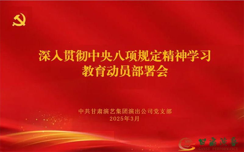 近日,甘肅省演出公司黨支部召開深入貫徹中央八項規(guī)定精神學(xué)習(xí)教育動員部署會。公司黨支部書記馬臨軍主持會議并作動員部署,公司黨支部副書記、執(zhí)行董事、總經(jīng)理周文帥及其他班子成員、中層干部、全體黨員參加會議。