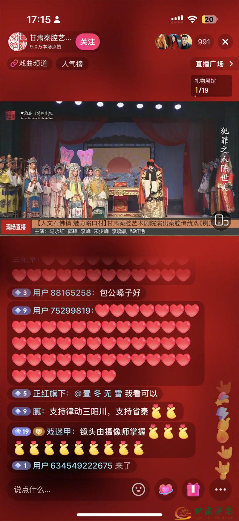 此次峪口村、余峽村巡演中,劇院首次嘗試“線下演出+線上直播”雙線模式,通過(guò)抖音、視頻號(hào)等平臺(tái)同步直播,甘肅演藝集團(tuán)官方平臺(tái)全程轉(zhuǎn)播,讓秦腔藝術(shù)突破地域限制,走進(jìn)千家萬(wàn)戶?!跺幟腊浮贰痘鹧骜x》《鎖麟囊》(青春版)《金沙灘》《清風(fēng)亭》等經(jīng)典劇目輪番上演,臺(tái)上演員水袖翻卷、唱腔鏗鏘,臺(tái)下觀眾掌聲喝彩聲不斷,兩站演出累計(jì)線上觀眾100萬(wàn)人次。網(wǎng)友紛紛留言:“秦腔直播太上頭,老戲新唱有味道!”“隔著屏幕都感受到現(xiàn)場(chǎng)的火熱!”傳統(tǒng)戲曲與新媒體的深度融合,不僅為鄉(xiāng)村百姓送去文化盛宴,更讓年輕群體領(lǐng)略到秦腔的獨(dú)特魅力。