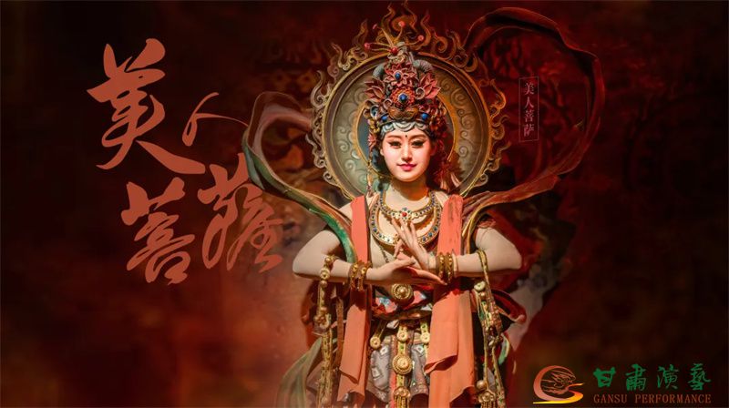 美人菩薩的創(chuàng)作靈感借鑒自莫高窟第57號(hào)特窟,窟內(nèi)主室南壁的觀世音菩薩是美人菩薩的原型——觀世音菩薩。劇目高度還原了美人菩薩的化佛冠、瓔珞、臂釧、服飾等細(xì)節(jié)。