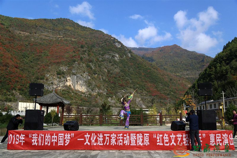 即將完成秋冬季節(jié)交替的美好11月,隴南徽縣大地多個(gè)鄉(xiāng)鎮(zhèn)喜氣洋洋,甘肅演藝集團(tuán)歌舞劇院2019年“我們的中國(guó)夢(mèng)”文化進(jìn)萬(wàn)家活動(dòng)暨隴原“紅色文藝輕騎兵”惠民演出一連幾日在此激情登場(chǎng),用深接地氣、緊貼民心、積極昂揚(yáng)的優(yōu)秀歌舞類(lèi)綜合節(jié)目,謳歌祖國(guó)、贊美時(shí)代、暢想未來(lái),為當(dāng)?shù)鼗鶎尤罕娝蜕狭擞鋹傌S盛的文化大餐,將新時(shí)代文藝院團(tuán)“舉旗幟、聚民心、育新人、興文化、展形象”的光輝使命化為看得見(jiàn)的行動(dòng)、聽(tīng)得見(jiàn)的心聲。