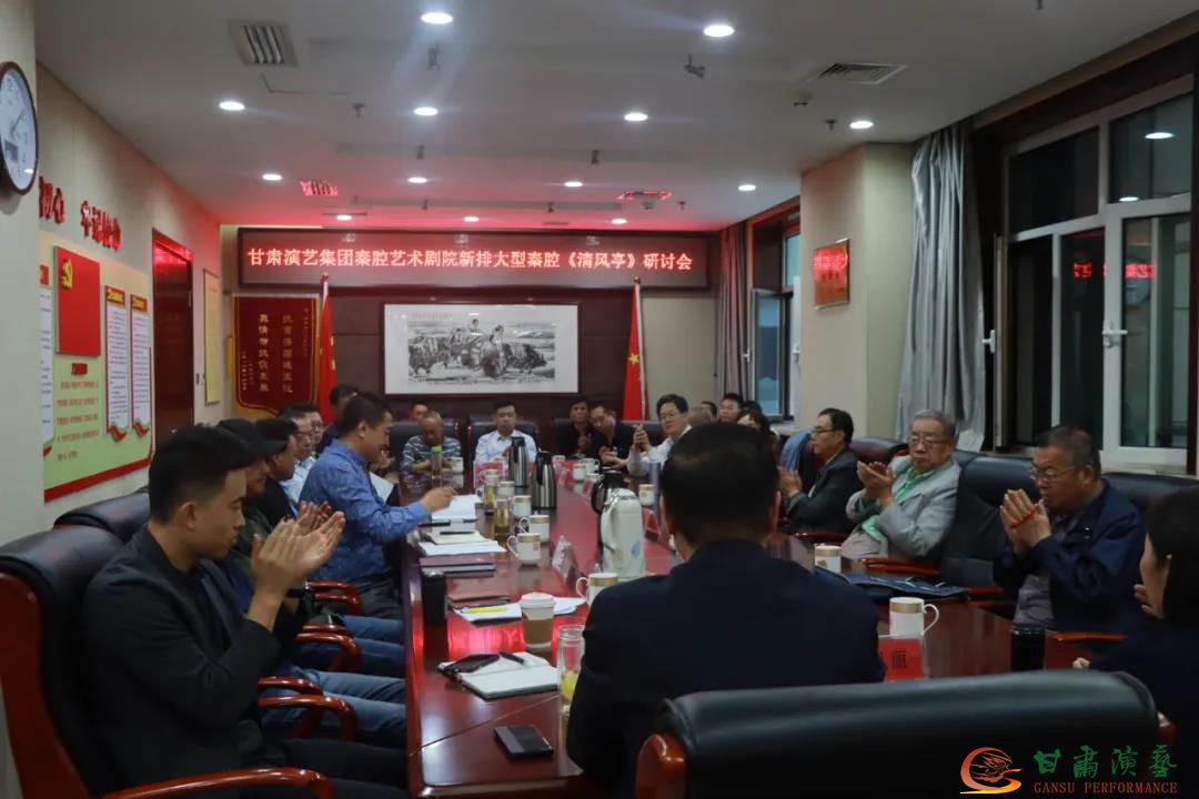 9月19日下午,新排大型秦腔《清風(fēng)亭》劇目研討會(huì)在甘肅演藝集團(tuán)召開。會(huì)議邀請(qǐng)我省文藝界有關(guān)專家學(xué)者、資深戲迷、集團(tuán)黨委班子成員,直屬各單位主要負(fù)責(zé)人和該劇主創(chuàng)人員、主要演員共計(jì)40人參會(huì)。