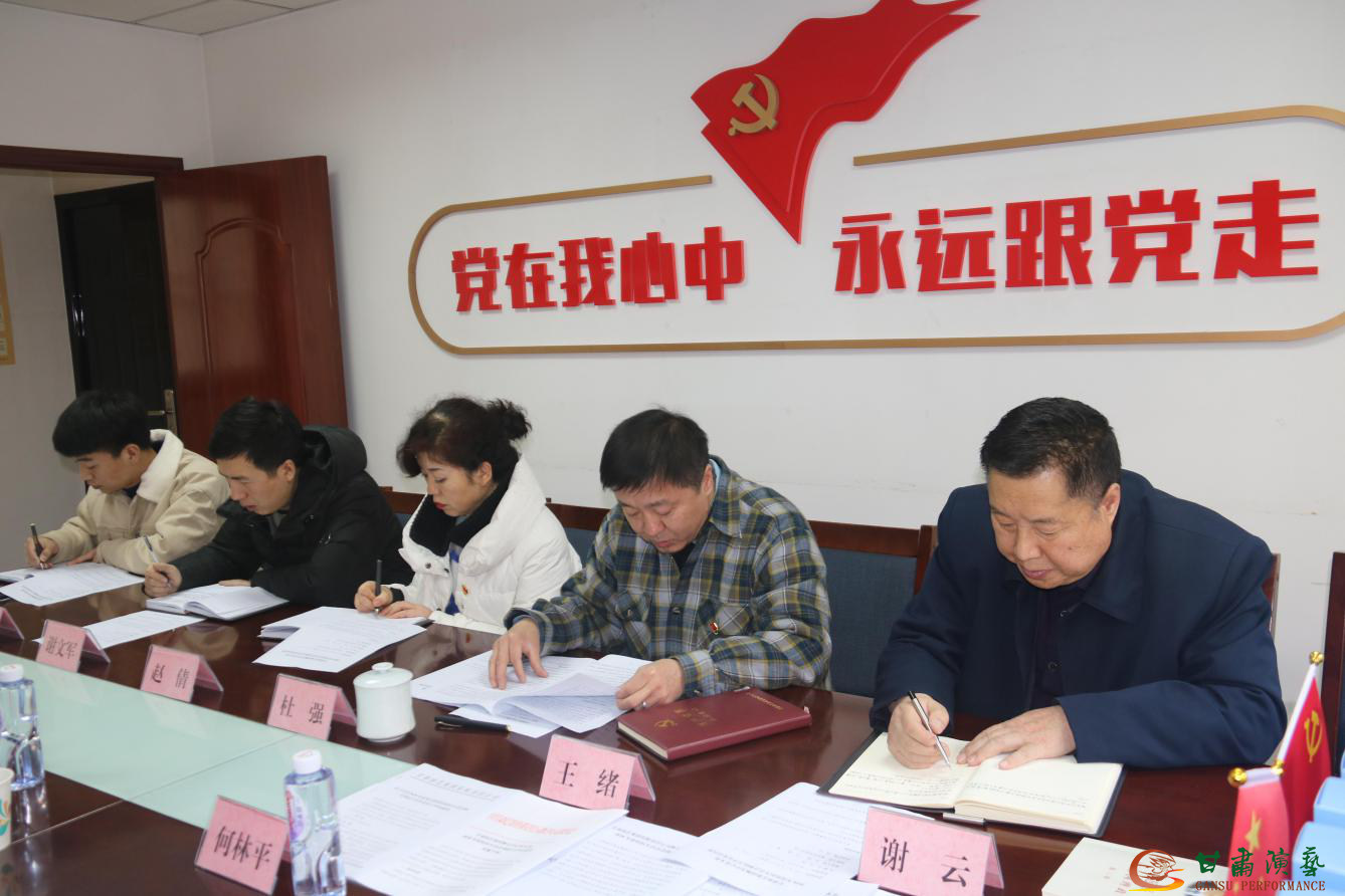 按照甘肅演藝集團黨委安排部署,2021年1月29日上午,甘肅演藝集團舞美中心黨支部召開了2020年度組織生活會和民主評議黨員工作。會議以“認真學習習近平新時代中國特色社會主義思想,貫徹落實習近平總書記對甘肅重要講話和指示精神,把握政治方向、加強政治建設、提高政治能力,真抓實干,擔當作為,厲行節(jié)約,發(fā)揮基層黨組織戰(zhàn)斗堡壘和黨員先鋒模范作用?!睘橹黝}。集團黨委指導組何林平、李浩學兩位同志全程與會指導,會議由支部副書記杜強同志主持,支部全體黨員參加會議、入黨積極分子列席會議。