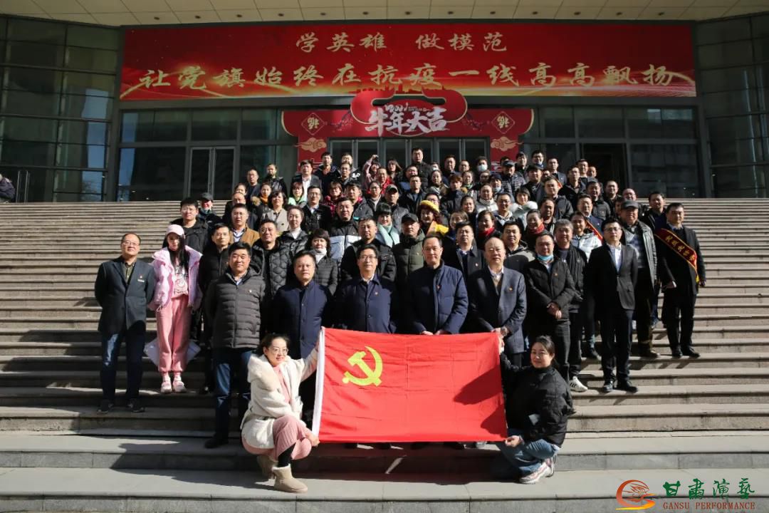 為深入學習貫徹習近平總書記在全國抗擊新冠肺炎疫情表彰大會上的重要講話精神,積極開展“學習身邊榜樣”活動,大力弘揚抗疫精神。由甘肅演藝集團機關黨支部牽頭于2021年2月2日下午在黃河劇院開展了“學英雄·做模范—讓黨旗始終在抗疫一線高高飄揚”主題黨日活動。主題黨日活動由機關黨支部副書記胡慶昭主持,集團機關黨支部、敦煌藝術團黨總支、話劇院黨總支、秦腔藝術劇院黨總支、演出公司黨支部、舞美中心黨支部共100余人參加。