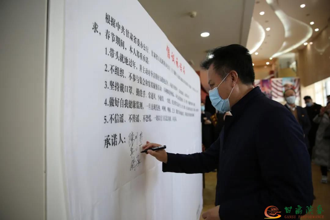 根據中共甘肅省委辦公廳、甘肅省人民政府辦公廳《關于做好人民群眾就地過年服務保障工作的通知》(甘辦發(fā)電〔2021〕19號)要求,在甘肅演藝集團黨委書記、董事長陳其銀及集團領導班子成員的帶領下,所有參加活動的黨員及入黨積極分子簽訂帶頭就地過年倡議承諾書。