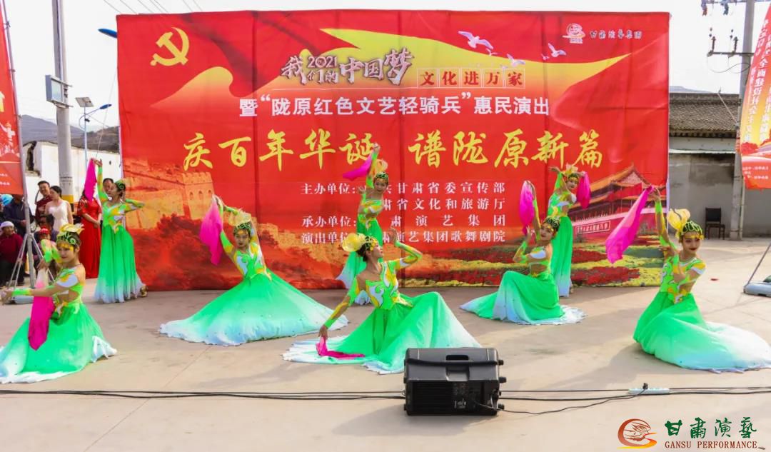 由中共甘肅省委宣傳部、甘肅省文化和旅游廳主辦,甘肅演藝集團(tuán)承辦,甘肅演藝集團(tuán)歌舞劇院傾力呈現(xiàn)的“慶百年華誕,譜隴原新篇”2021年“我們的中國(guó)夢(mèng)”——文化進(jìn)萬(wàn)家暨“隴原紅色文藝輕騎兵”惠民演出自開(kāi)展以來(lái),演員們大力弘揚(yáng)“紅色文藝輕騎兵”精神,扎根人民,服務(wù)群眾,為基層百姓奉上了精致的“文化惠民”大餐。