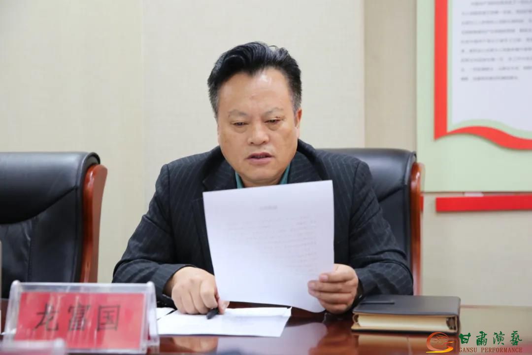 為認真貫徹黨的十九大、十九屆二中、三中、四中、五中全會和習近平總書記對甘肅重要講話和指示精神,全面展現(xiàn)高質量發(fā)展取得的偉大成就,2021年4月19日,甘肅演藝集團組織召開了甘肅演藝集團藝術委員會2021年第二次會議,專題研討了大型原創(chuàng)現(xiàn)代秦腔《人往高處走》劇目創(chuàng)排工作。甘肅演藝集團黨委書記、董事長陳其銀,黨委副書記、總經理劉小承,省文聯(lián)主席王登渤,省委宣傳部、省文旅廳有關處室領導出席研討會,省內戲劇名家、《人往高處走》主創(chuàng)團隊、秦腔藝術劇院領導班子以及新聞媒體記者共30余人參加了研討會。會議由甘肅演藝集團黨委副書記、監(jiān)事會主席、藝術總監(jiān)龍富國主持。