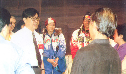 鄧穎超與我團扮演周恩來的演員鄭世和等在一起