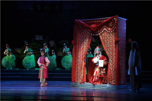 薛湘靈出嫁當(dāng)日,中途遇雨,在"春秋亭"暫避,恰遇同日出嫁的貧家女子趙守貞,趙感嘆家境貧寒、世態(tài)炎涼,在破舊的花轎中悲慟,湘靈聞知,慨然以"鎖麟囊"相贈(zèng)。