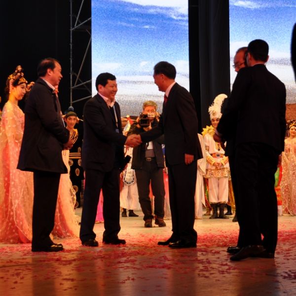 開幕式后,汪洋、黃佑呂與中韓嘉賓一起觀看了中國經(jīng)典舞劇《絲路花雨》。該劇以中國唐朝為背景,以舉世聞名的絲綢之路和敦煌壁畫為素材,通過感人至深的故事,頌揚了中國與鄰邦源遠流長的友誼。演員們精湛的舞姿、華美的服飾和唯美的藝術(shù)表現(xiàn),引發(fā)全場熱烈的掌聲。整場演出在繽紛飄落的花瓣雨中圓滿落幕。