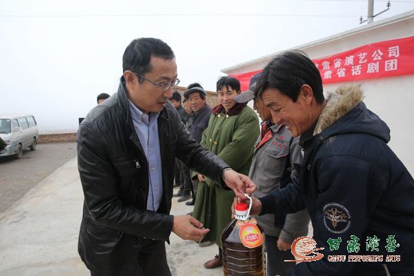 之后,甘肅省話劇院在白塬村新建的文化廣場(chǎng)上給父老鄉(xiāng)親送上了一臺(tái)“文化盛宴”,祝賀文化廣場(chǎng)的落成。演出在一曲《最炫民族風(fēng)》中拉開(kāi)帷幕,抑揚(yáng)頓挫、滿懷深情的詩(shī)歌朗誦,余音繚繞、回味無(wú)窮的器樂(lè)演奏以及精心編排的以“倡廉反腐”為主題的小品等,深深地吸引了鄉(xiāng)親們的目光,撥動(dòng)著他們激蕩的心。盡管室外溫度已是零下,但并沒(méi)有影響父老鄉(xiāng)親觀看節(jié)目的熱情,他們一次次地歡呼雀躍,將幾個(gè)小時(shí)的演出不斷推向高潮。為了籌備此次演出,省話劇院的演藝人員,傾注了大量的心血,付出了艱辛的勞動(dòng),他們用一臺(tái)組織簡(jiǎn)便,有感染力,質(zhì)量較高的節(jié)目,把點(diǎn)點(diǎn)滴滴的關(guān)愛(ài)灑進(jìn)了每一位白塬村父老鄉(xiāng)親的心中,把宣傳黨的富民政策融入到文藝節(jié)目之中,展現(xiàn)了演藝集團(tuán)干部在雙聯(lián)慰問(wèn)行動(dòng)中奮發(fā)有為、昂揚(yáng)向上的精神風(fēng)貌,達(dá)到了“文化下鄉(xiāng)、情暖百姓、服務(wù)社會(huì)、心聲交融”的目的。演出期間,胡總和話劇院院長(zhǎng)朱衡還為當(dāng)?shù)?0多戶雙聯(lián)戶親手送上了面粉和食用油等慰問(wèn)品。