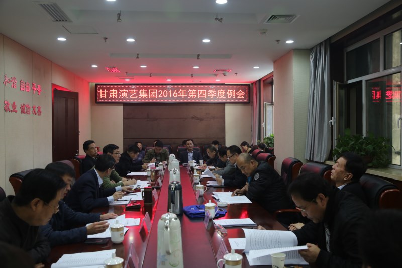 2016年10月17日下午3點,甘肅演藝集團召開了第四季度例會。會議由集團藝術(shù)總監(jiān)胡豫川主持,集團領(lǐng)導(dǎo)班子成員、中層干部、各所屬(代管)單位領(lǐng)導(dǎo)班子成員參加了此次會議。
