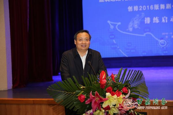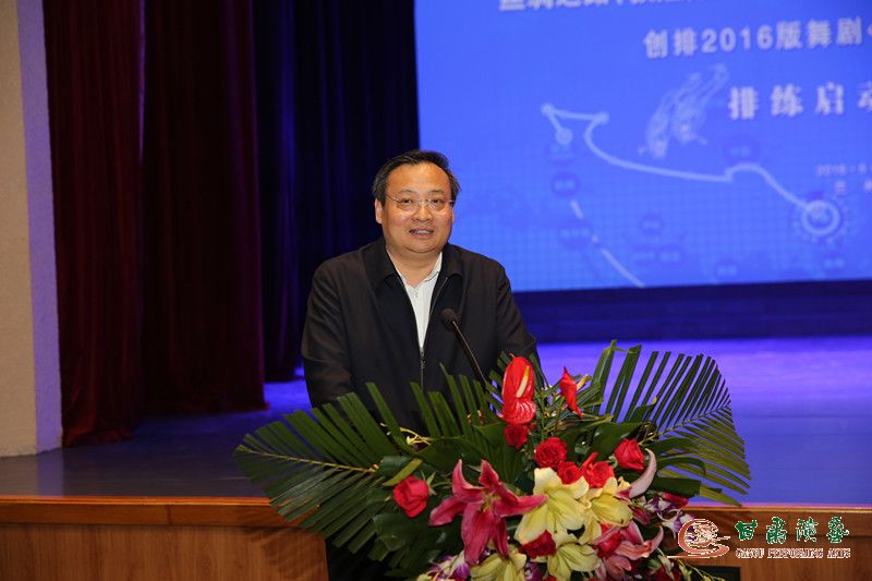 2016年5月20日,絲綢之路(敦煌)國際文化博覽會開幕式演出劇目《絲路花雨》2016版重排啟動儀式在省歌舞劇院敦煌樂宮隆重舉行,省委常委、宣傳部長梁言順出席并致辭。