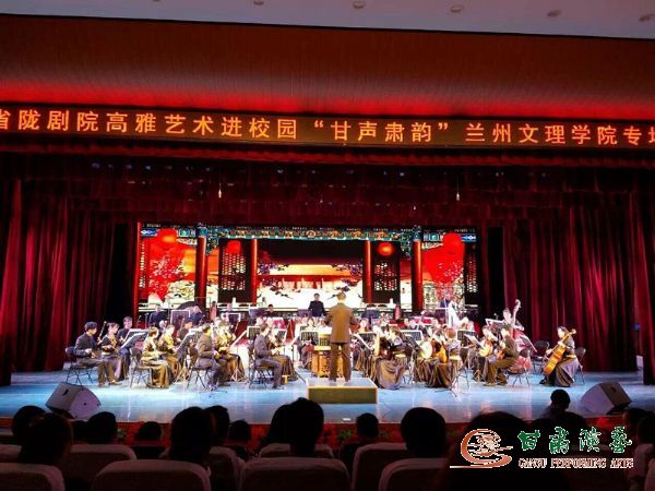5月22日晚,甘肅省隴劇院攜手甘肅省文化廳、蘭州文理學院舉辦高雅藝術進校園專場演出,此次演出甘肅省隴劇院院長楊波、副院長薛磊,校黨委書記史百戰(zhàn)、張兆勤副校長和文理學院師生500人共同觀看。此次演出共有11個節(jié)目。演出以大型民族管弦樂《甘聲肅韻》開場,他們由國家一級演員、梅花獎獲得者:竇鳳霞、佟紅梅、雷通霞等藝術家先后上演了隴劇《楓洛池》選段、二胡協(xié)奏曲《西峽隨想》、女聲獨唱《想隴東?回隴東》、女聲獨唱《追尋》、隴劇《穆桂英休夫》選段、板胡獨奏《秦腔牌子曲》、男聲獨唱《問黃河》、秦腔《王桂花紡線》選段等,精彩的節(jié)目在精彩的掌聲以及喝彩聲中以民族交響樂《拉德斯基進行曲》落下帷幕,取得圓滿成功。
