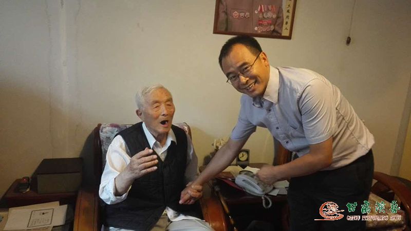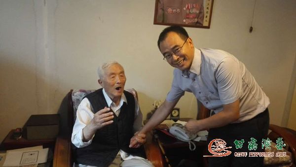 朱處長與91歲的離休老干部趙宜秋親切交談,俯身在他耳邊詳細(xì)詢問他的健康狀況和生活待遇等情況,將黨和政府給予老干部的慰問金轉(zhuǎn)交給趙宜秋。當(dāng)趙宜秋老干部聽不清楚對話時,朱處長拿筆用紙把黨和政府的關(guān)懷寫出來遞到老人家手中,看到、聽到他現(xiàn)在生活的幸??鞓?,朱處長也露出了喜悅的笑容,并向趙宜秋老干部為甘肅雜技事業(yè)發(fā)展做出的貢獻(xiàn)表示感謝,