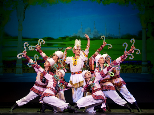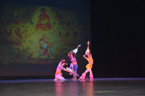 在2個小時的演出中,甘肅歌舞劇院的演員們以舞蹈、聲樂、器樂等形式生動展現(xiàn)了中國傳統(tǒng)文化,藝術(shù)再現(xiàn)了古絲綢之路各種文明的交流融合。