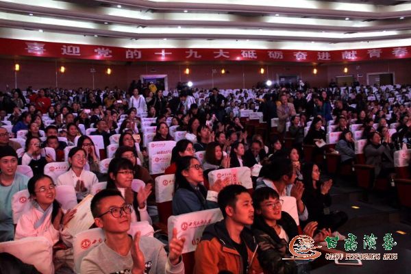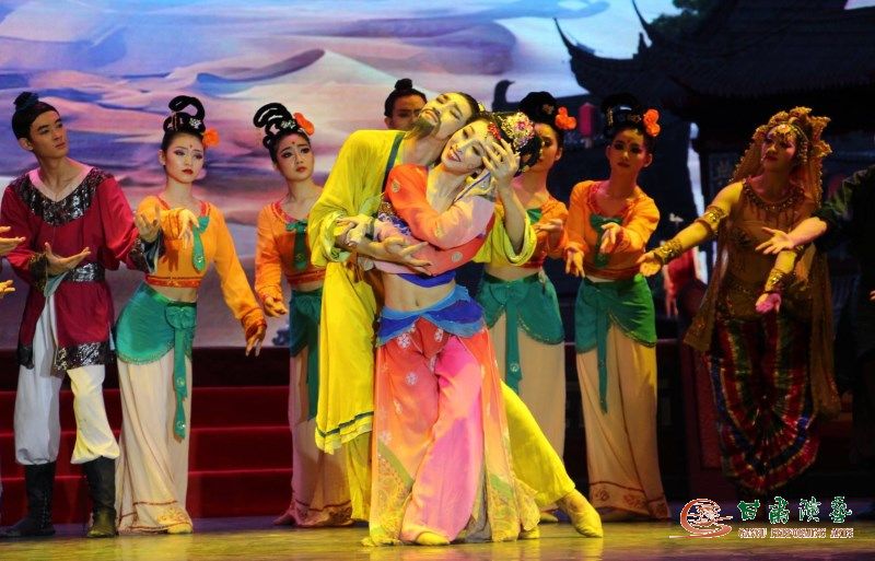 染青城峨眉之靈秀,汲工部武侯之神韻。西南民族大學(xué)坐落于天府之國(guó),位于芙蓉之都的錦繡成都,是民族高等教育鑲嵌在祖國(guó)大西南的一顆明珠,被譽(yù)為“共和國(guó)少數(shù)民族精英的搖籃”。晚7時(shí)許,在輕靈的樂聲中,大幕徐徐拉開,美麗的伎樂天在繚繞的祥云中漸漸現(xiàn)出身影,飛花翩躚,彩帶回旋,飛天凌空,現(xiàn)場(chǎng)頓時(shí)響起熱烈的掌聲,被獨(dú)特的開場(chǎng)舞所震撼。整個(gè)演出過程中,曲折動(dòng)人的故事情節(jié),伴隨著優(yōu)美的音樂旋律和美輪美奐、變幻多姿的舞臺(tái)布景,一次次將現(xiàn)場(chǎng)氣氛推向高潮。