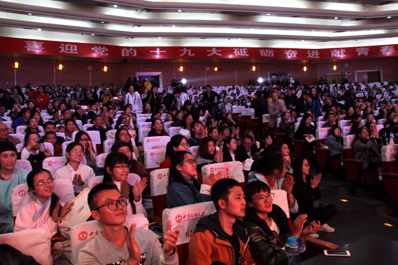 染青城峨眉之靈秀,汲工部武侯之神韻。西南民族大學(xué)坐落于天府之國,位于芙蓉之都的錦繡成都,是民族高等教育鑲嵌在祖國大西南的一顆明珠,被譽(yù)為“共和國少數(shù)民族精英的搖籃”。晚7時(shí)許,在輕靈的樂聲中,大幕徐徐拉開,美麗的伎樂天在繚繞的祥云中漸漸現(xiàn)出身影,飛花翩躚,彩帶回旋,飛天凌空,現(xiàn)場頓時(shí)響起熱烈的掌聲,被獨(dú)特的開場舞所震撼。整個(gè)演出過程中,曲折動(dòng)人的故事情節(jié),伴隨著優(yōu)美的音樂旋律和美輪美奐、變幻多姿的舞臺(tái)布景,一次次將現(xiàn)場氣氛推向高潮。