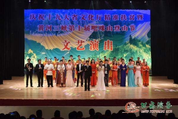 中國共產(chǎn)黨第十九次全國代表大會(huì)在北京勝利閉幕的喜慶日子里,省文化廳于2017年10月27日帶領(lǐng)甘肅省歌劇院赴永靖縣開展“文化扶貧”演出。永靖縣是省文化廳對(duì)口幫扶縣,這次演出是在省文化廳赴永靖縣新寺鄉(xiāng)開展精準(zhǔn)扶貧幫扶入戶工作期間,為切實(shí)做好精準(zhǔn)扶貧、精準(zhǔn)脫貧工作,專門組成了扶貧文藝演出團(tuán)隊(duì),和永靖縣黨政干部、父老鄉(xiāng)親共同慶祝黨的十九大勝利閉幕。為永靖的精準(zhǔn)扶貧、精準(zhǔn)脫貧加油鼓勵(lì),在全國奔小康的金光大道上攜手前進(jìn)。