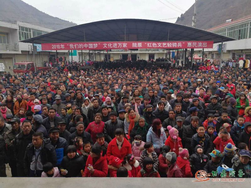 為深入學(xué)習(xí)貫徹黨的十九大精神和習(xí)近平總書記對(duì)烏蘭牧騎“紅色文藝輕騎兵”重要指示精神,落實(shí)中宣傳部關(guān)于2018年元旦春節(jié)期間廣泛開展“我們的中國夢(mèng)”——文化進(jìn)萬家活動(dòng)的要求,2018年1月22日至26日,甘肅秦腔藝術(shù)劇院的50余名演職人員冒著凜冽的寒風(fēng)和大雪,赴西和縣蘇合鄉(xiāng)張家河村、石峽鎮(zhèn)石峽村及秦安縣郭嘉鎮(zhèn)寺開展“我們的中國夢(mèng)”文化進(jìn)萬家暨隴原“紅色文藝輕騎兵”惠民演出活動(dòng)。
