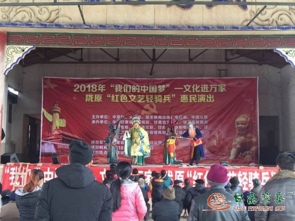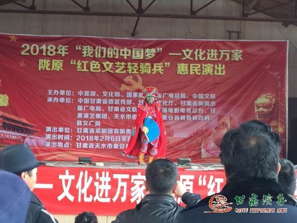 2018年2月5日,甘肅省京劇院“紅色小分隊(duì)”前往秦安縣西川鎮(zhèn)神明川村開展“我們的中國(guó)夢(mèng)”文化進(jìn)萬(wàn)家暨隴原“紅色文藝輕騎兵”惠民演出活動(dòng)。