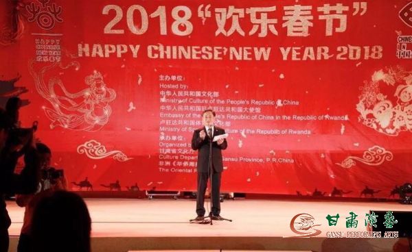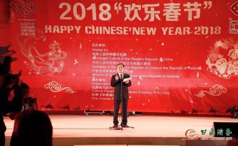 由中國(guó)文化部、中國(guó)駐盧旺達(dá)大使館、盧旺達(dá)體育與文化部共同主辦,甘肅省文化廳、非洲《華僑周報(bào)》承辦,甘肅省隴劇院演出的2018年“歡樂(lè)春節(jié)”《絲路情韻》文藝演出活動(dòng)于2018年2月9日盧旺達(dá)當(dāng)?shù)貢r(shí)間19點(diǎn)30分至21點(diǎn)在基加利會(huì)展中心舉行。整臺(tái)節(jié)目將中國(guó)戲曲與歌、舞、樂(lè)融為一體,中國(guó)文化元素凸顯,甘肅地域特色突出,既承載了華夏文明的古典情韻,又展示出現(xiàn)代中國(guó)的時(shí)尚潮流。節(jié)目?jī)?nèi)容涵括中國(guó)戲曲、少數(shù)民族特色歌舞、民族器樂(lè)、雜技技藝等。值此中國(guó)新春佳節(jié)之際,向非洲友人和海外同胞致以最真摯的祝福。觀看演出的主要領(lǐng)導(dǎo)有:中國(guó)駐盧旺達(dá)大使館饒宏偉大使、盧旺達(dá)文體部部長(zhǎng)朱利安娜·烏瓦庫(kù)(Julienne UWACU)。盧政府、政黨、議會(huì)、軍隊(duì)、工商、學(xué)術(shù)、新聞等各界,及駐盧使團(tuán)、中資機(jī)構(gòu)及華僑華人代表2000余人應(yīng)邀出席。