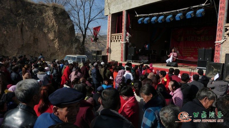 結(jié)束了蘇峽村的演出,在匆匆吃過(guò)簡(jiǎn)單午餐后,演出小分隊(duì)全體演職人員又將整整一上午勞動(dòng)留下的疲憊無(wú)言忘卻,頂著雖是正月初春、但卻已相當(dāng)火辣的太陽(yáng),向著道路更加坎坷難行的景家村出發(fā)。一路顛簸,趕至景家村鄉(xiāng)村舞臺(tái)時(shí),恰逢當(dāng)?shù)貜R會(huì)唱大戲的間隙,舞臺(tái)與臺(tái)前場(chǎng)地空間本就十分有限,加之該村與臨近十里八村前來(lái)觀看演出的群眾數(shù)量急劇增多,給演出小分隊(duì)音響設(shè)備安裝調(diào)試和演出均提出了嚴(yán)峻考驗(yàn),但演出小分隊(duì)全體演職人員始終心系對(duì)演出質(zhì)量的不茍追求、對(duì)廣大老百姓認(rèn)真負(fù)責(zé)的態(tài)度,最終尤為出色地完成了演出任務(wù)。臺(tái)前院落中、臺(tái)旁山坡土崖邊,里三層外三層興致勃勃的老百姓們,紛紛將由心而發(fā)的掌聲、喝彩聲一次次送給臺(tái)上傾心表演的小分隊(duì)成員們,演出現(xiàn)場(chǎng)氣氛熱烈至極,盡情歡騰的舞姿、快樂(lè)流淌的歌聲,還有舒心舒扉的民族器樂(lè)旋律,與廣大老百姓的歡顏笑語(yǔ)融為一體,勾勒出景家村這個(gè)美麗山鄉(xiāng)新春伊始最為激動(dòng)人心的文化盛景!