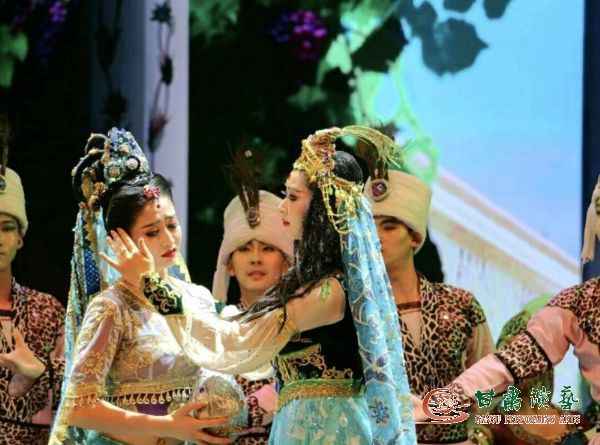 在領(lǐng)導(dǎo)致辭和互換禮物環(huán)節(jié)之后,輕靈的樂聲緩緩響起,大幕徐徐拉開,演員們用唯美的肢體語言,為觀眾撥開千年時(shí)空迷霧,現(xiàn)場(chǎng)頓時(shí)響起熱烈的掌聲,被獨(dú)特的開場(chǎng)序幕《金光千佛》所震撼。在整個(gè)演出過程中,曲折動(dòng)人的故事情節(jié),伴隨著優(yōu)美的音樂旋律和美輪美奐、變幻多姿的舞臺(tái)布景,一次次將現(xiàn)場(chǎng)氣氛推向高潮,歡呼聲和贊嘆聲此起彼伏、不絕于耳,兩所大學(xué)共計(jì)四千五百多名師生觀看演出。