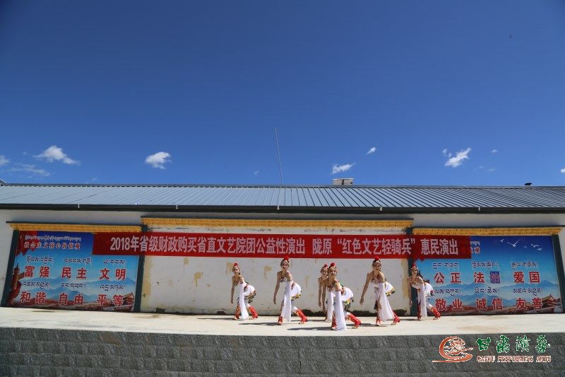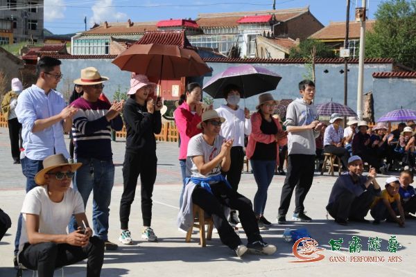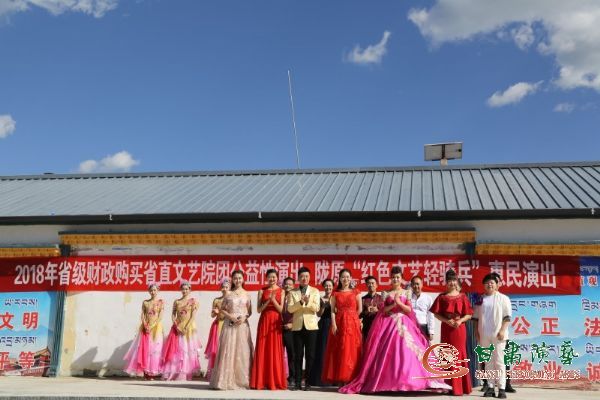 天藍藍,草青青,七月的甘南州夏河縣,一派詩情畫意。24日下午,素以中國經(jīng)典舞劇《絲路花雨》聞名于世的甘肅省歌舞劇院“紅色文藝輕騎兵”演出小分隊在該院綜合辦公室主任王華帶領下,不顧長途顛簸的疲憊與(因時間緊迫,顧不上吃飯而導致的)饑腸轆轆,頭頂烈日,于該縣阿木去乎鎮(zhèn)文化廣場,將一場潛心編排的精品文藝節(jié)目熱情呈獻給了當?shù)啬矫鴣淼膹V大老百姓,以精湛演技贏得高度贊譽,圓滿完成了該院本年度省級財政購買省直文藝院團公益性演出暨隴原“紅色文藝輕騎兵”惠民演出活動甘南州站的喜悅開幕。