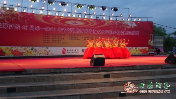2018年8月30日,由甘肅省委宣傳部、嘉峪關(guān)市人民政府主辦,甘肅省文化廳、甘肅演藝集團(tuán)、嘉峪關(guān)市為宣傳部承辦的“改革開放四十年,2018省級(jí)政府購(gòu)買省直文藝院團(tuán)公益性惠民演出”在嘉峪關(guān)人民廣場(chǎng)隆重開演。