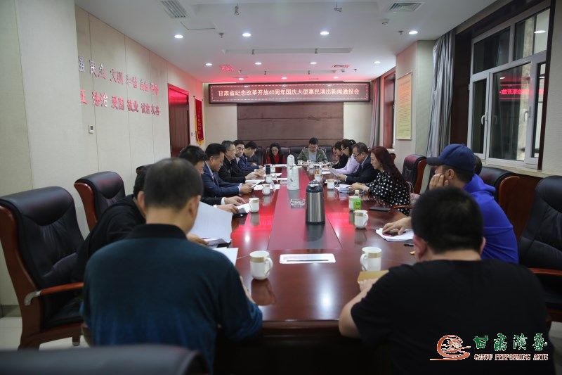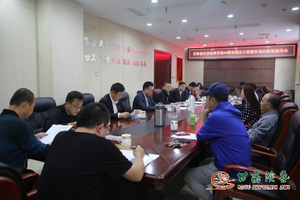 9月21日下午3點,甘肅演藝集團在二樓會議室召開了甘肅省紀念改革開放40周年國慶大型惠民演出新聞通報會。包括甘肅演藝集團原藝術總監(jiān)胡豫川、副總經(jīng)理龍富國、演藝部部長崔華功、省歌舞劇院黨總支書記楊亦兵、甘肅大劇院副總經(jīng)理張洪田、省話劇院藝術總監(jiān)張圣海、省隴劇院院長助理王為民、省京劇團辦公室主任尤瑞,甘肅電視臺、甘肅日報、新華網(wǎng)甘肅頻道、中國甘肅網(wǎng)、甘肅經(jīng)濟日報、蘭州日報、蘭州晚報、蘭州晨報、甘肅交通廣播等媒體記者在內(nèi)的30余人參加了此次會議。