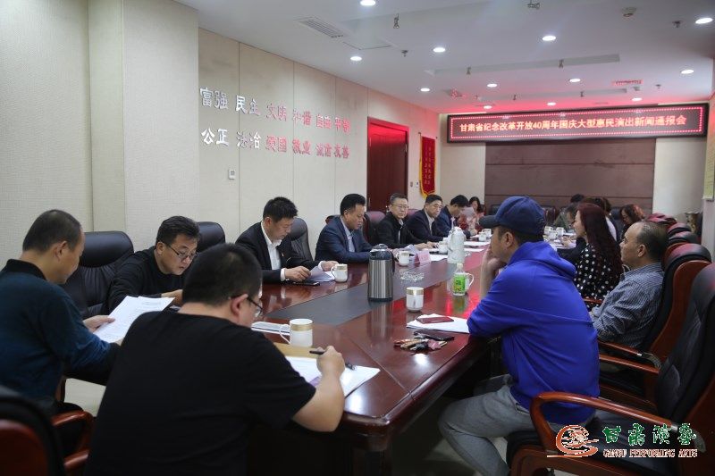 會議由甘肅演藝集團副總經(jīng)理龍富國住持,他指出,今年是中國共產(chǎn)黨帶領全國各族人民堅持改革開放40年,取得舉世矚目偉大成就的一年,也是我省文藝工作者銳意改革、拼搏進取的一年。十月的金城蘭州,金風送爽、瓜果飄香,這是收獲的季節(jié),恰逢新中國69周年華誕,在這個美好日子,為了表達甘肅演藝集團全體藝術工作者的初心和使命,以及與全省人民歡度國慶、同賀改革開放40周年的喜悅之情,在省委、省政府的大力支持下,我們將于9月30日至10月8日在蘭州大劇院舉辦“紀念改革開放40周年國慶大型惠民演出”活動。我們期望通過這次惠民演出活動,使金城蘭州的廣大藝術愛好者欣賞到高雅的舞臺藝術精品,享受到豐富的文化藝術大餐。同時,也通過演出活動,讓廣大市民感受到我國改革開放40年來經(jīng)濟社會發(fā)展帶來的豐碩成果。