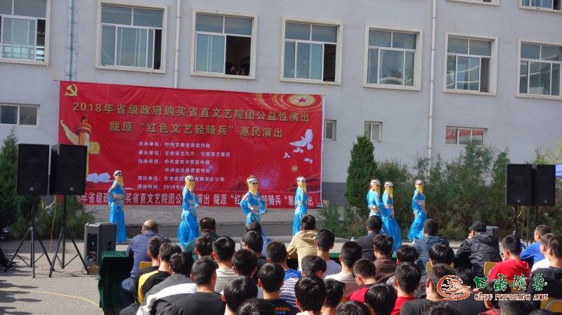 2018年9月19日,甘肅省話劇院參加隴原“紅色文藝輕騎兵”惠民演出的全體演職員,踏著秋天的腳步來到了定西市臨洮縣。一到演出的現(xiàn)場,演職員們干勁十足,搭起棚子、接上音響、拉上橫幅,一場豐富精彩的綜藝節(jié)目就這樣拉開帷幕。別看舞臺簡單,但演員們準(zhǔn)備的卻很充分,每一個演出節(jié)目都很精彩。反腐倡廉的幽默小品《錯位的造訪》不時引得村民們捧腹大笑,現(xiàn)代京劇《打虎上山》、歌曲獨唱《有你相隨》、《花開在眼前》、《向天再借五百年》、《熱情的沙漠》、動感十足的現(xiàn)代舞《屋頂著火》、相聲《懶漢糖葫蘆》、異域風(fēng)情的《波斯舞》、合唱《相親相愛》等節(jié)目引來村民們陣陣熱烈的掌聲。臺上演出生動、精彩,臺下觀眾情緒高漲、歡呼雀躍。甘肅省話劇院隴原“紅色文藝輕騎兵”演出小分隊將下基層演出的文藝節(jié)目緊密結(jié)合黨的十九大精神宣傳,送到了老百姓的心坎上,受到了老百姓的好評與稱贊!