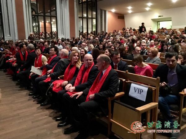 1月26日晚,拉脫維亞首都里加大吉爾德音樂廳中國年味濃濃,座無虛席,有著較高音樂素養(yǎng)的拉脫維亞觀眾用心聆聽來自遙遠(yuǎn)東方中國的旋律。當(dāng)拉脫維亞經(jīng)典曲目《母親河》奏響時,全場觀眾肅然起立,隨著節(jié)奏擊掌合拍,中國藝術(shù)家將此曲所表現(xiàn)的脫維亞不屈不撓的民族精神演奏得出神入化,許多觀眾被音樂和藝術(shù)所感染,飽含熱淚,以熱烈的經(jīng)久不息的掌聲對中國藝術(shù)家致以崇高的敬意。演出結(jié)束后,觀眾沉醉于中國民樂當(dāng)中,久久不愿離場。80高齡的拉脫維亞著名漢學(xué)家、《拉漢大詞典》編篡者、拉脫維亞漢學(xué)研究和教學(xué)泰斗、拉脫維亞孔子學(xué)院拉方院長彼得·貝德高先生主動登臺用中文講話,對演出給予高度的評價和贊譽,他作為一名德高望重的漢語教學(xué)的奠基者和傳承者,從中國民族交響樂《隴上行》音樂中感受到了中國厚重的歷史和文化,聆聽到了中國西部的沙漠、黃土和民族風(fēng)情,讀懂了絲綢之路的過去和未來,稱贊這臺音樂會是他聽到的所有音樂會中最震撼、最難忘的一臺演出。駐拉脫維亞各國使團(tuán)、使節(jié)代表及拉脫維亞各界代表出席并觀看了演出。