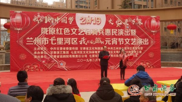 由甘肅省委宣傳部、甘肅省文化和旅游廳主辦、甘肅演藝集團(tuán)承辦的2019“我們的中國(guó)夢(mèng)”-----文化進(jìn)萬家暨隴原“紅色文藝輕騎兵”惠民演出繼續(xù)領(lǐng)跑,甘肅省話劇院隴原“紅色文藝輕騎兵”演出小分隊(duì)2月17日赴七里河區(qū)秀川街道銀灘花園為當(dāng)?shù)氐陌傩赵谡率迩八蜕狭艘粓?chǎng)精彩的文化“視聽盛宴”。