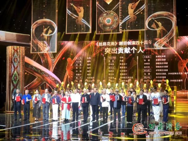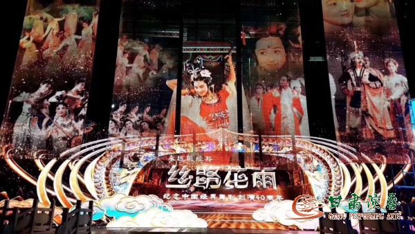 當(dāng)晚,由中共甘肅省委宣傳部主辦,甘肅省文化和旅游廳、甘肅省文聯(lián)、甘肅日?qǐng)?bào)社、甘肅新媒體集團(tuán)協(xié)辦,甘肅演藝集團(tuán)、甘肅廣播電視總臺(tái)承辦的紀(jì)念《絲路花雨》創(chuàng)演40周年文藝晚會(huì)在甘肅大劇院舉行,晚會(huì)上,省委宣傳部對(duì)《絲路花雨》劇目突出貢獻(xiàn)集體,朱江、許琪、晏建中、陸金龍、張稷等28人《絲路花雨》劇目創(chuàng)演40周年突出貢獻(xiàn)個(gè)人,向牟瑜、樊玲、楊亦兵、楊傳弘、王瓊、韓晶、韓煦、安寧、康琦、曹飛、趙敏、周虹、張博、席佳麗、趙莉等15人《絲路花雨》劇目創(chuàng)演40周年優(yōu)秀傳承人進(jìn)行了表?yè)P(yáng)。晚會(huì)分為誕生、守望、綻放、絲路繽紛四個(gè)篇章,演出中眾多主創(chuàng)人員與傳承者還通過(guò)情景再現(xiàn)的方式再登舞臺(tái),共同訴說(shuō)40年《絲路花雨》的經(jīng)典傳奇。紀(jì)念晚會(huì)在觀眾的掌聲、喝彩聲和繽紛的吉祥花雨中圓滿(mǎn)落下帷幕。