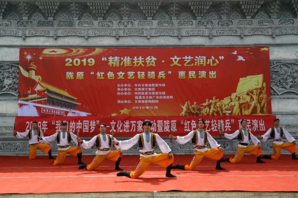 繼甘肅演藝集團2019年“我們的中國夢”——文化進萬家暨隴原“紅色文藝輕騎兵”省歌舞劇院小分隊惠民演出在舟曲落下帷幕之后,演職人員又精彩接力,于5月13日、14日分別在臨夏折橋鎮(zhèn)、東區(qū)街道、南龍鎮(zhèn)、茶馬古市傾情呈現(xiàn)四場高水準文藝節(jié)目,對今年惠民演出季予以別樣點綴,使得這個絢麗的季節(jié),成為當?shù)剜l(xiāng)親們難以忘卻的美好記憶。