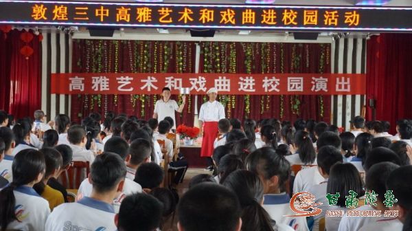 為積極推進校園文化建設(shè),豐富師生業(yè)余文化生活,6月25日起始,甘肅演藝集團敦煌藝術(shù)團走進敦煌市各大校園,拉開了2019“高雅藝術(shù)和戲曲進校園”敦煌站的演出序幕。