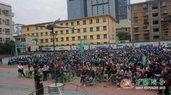 演出以傳統(tǒng)雜技表演為主,融合了歌舞、滑稽等多種藝術(shù)元素。在場的全體師生們聽之,樂之,醉之,報之以熱烈的掌聲。雜技表演驚險刺激、跌宕起伏,扣人心弦;男聲獨唱聲音渾厚、氣息通暢、感情真摯;女聲獨唱音色甜美純凈、頗具質(zhì)感與穿透力。